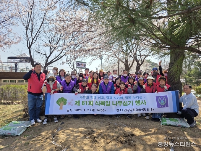 (중앙뉴스타임스 = 방재영 기자) 인천 부평구 삼산1동 주민자치회와 통장자율회는 지난 2일 삼산동 건강공원에서 열린 ‘제81회 식목일 나무 심기’ 행사에 참여했다.