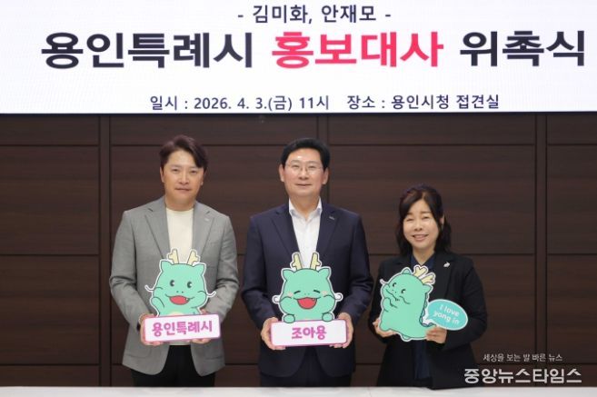 (중앙뉴스타임스 = 방재영 기자) 용인특례시는 3일 용인 시민인 방송인 김미화씨와 배우 안재모씨를 홍보대사로 위촉했다.