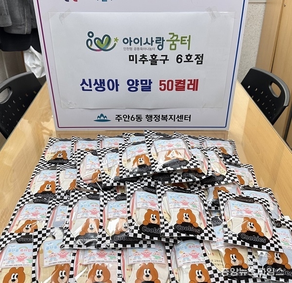 이번 기부는 소중한 생명의 탄생을 지역 사회가 함께 축하하고, 저출산 시대에 출산을 장려하는 분위기를 조성하고자 마련됐다. 후원된 양말은 주안6동 행정복지센터를 방문해 출생신고를 하는 부모들에게 출생 축하 선물로 전달될 예정이다.