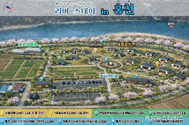 이번 사업 선정으로 홍천군은 두촌면 철정리 북창 농촌관광휴양단지 일원에 ‘LINK 4도 3촌, 리버-스테이(River-Stay) 인 홍천’을 조성한다. 사업은 2028년까지 3년 진행되며, 사업비는 국비 15억 원을 포함해 총 30억 원가량이 투입될 예정이다.