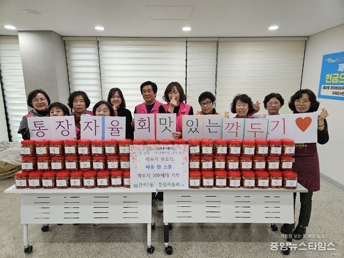 (중앙뉴스타임스 = 방재영 기자) 인천 남동구 간석1동 통장자율회는 관내 어려운 이웃을 위한 깍두기를 담가 행정복지센터에 전달했다고 14일 밝혔다.