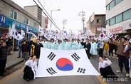 (중앙뉴스타임스 = 김수진 기자) 양주시가 1일 가래비3·1운동순국기념사업회 주관으로 양주시 광적면 소재 3·1운동 기념공원에서 '제107주년 양주 가래비 3·1운동 기념식 및 재연행사'를 개최하고 순국선열의 숭고한 희생정신을 기렸다. 이날 행사에는 양주시와 양주시의회, 경기북부보훈지청, 동두천양주교육지원청, 농협은행 양주시지부 등 기관 관계자와 독립유공자 유가족, 보훈단체 관계자, 사회단체장, 시민 등 600여 명이 참석했다. 행사는 국민의례를 시작으로 독립선언서 낭독, 기념사, 삼일절 노래 제창, 만세삼창, 기념공연, 거리만세행진 순으로 진행됐다. 기념 공연으로는 1919년 가래비 만세배미 현장을 재연한 창작 뮤지컬 ‘기억하라! 그날!’과 양주시립합창단 공연이 이어졌다. 시민들은 가래비 일대에서 전개됐던 만세운동을 재연하는 거리만세행진에 참여해 태극기를 흔들며 “대한독립 만세”를 외쳤다. 행사장에는 관내 독립운동가를 알리는 전시와 함께 시민이 태극기에 순국선열을 향한 감사와 소망의 메시지를 남기는 ‘시민 참여 보훈문화행사’도 마련됐다. 완성된 태극기는 양주시청 3층 갤러리에 전시될 예정이다. 강수현 양주시장은 “3·1운동은 우리 민족이 하나 되어 자주독립