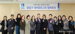 (중앙뉴스타임스 = 방재영 기자) 수원시 팔달구 새마을문고회는 지난 8일 황규돈 신임 팔달구청장과 함께 월례회의를 개최하며 새해 첫 출발을 알렸다. 이번 행사는 신임 구청장 취임 이후 새마을문고회와 처음으로 마련된 공식 만남으로, 지역 독서문화 활성화와 주민 공동체 발전을 위한 소통의 시간을 갖기 위해 추진됐다. 이날 월례회의에는 황규돈 팔달구청장과 함께 새마을문고회 회원들과 인사를 나누고, 2026년도 문고회 운영 방향과 주요 사업 계획을 공유했다. 또한 문고 운영 현장의 애로사항과 건의사항을 청취하며 자유로운 의견 교환이 이루어졌다. 이어 진행된 간담회에서는 보다 편안한 분위기 속에서 현장의 다양한 의견을 나누는 시간을 가졌다. 김정희 팔달구 새마을문고회 회장은 “신임 구청장과의 첫 월례회의를 통해 문고회의 역할과 향후 협력 방향을 공유할 수 있는 뜻깊은 시간이었다”며 “앞으로도 지역사회와 함께하는 독서문화 조성에 최선을 다하겠다”고 말했다. 황규돈 팔달구청장은 “지역 곳곳에서 독서문화 확산과 공동체 활성화를 위해 꾸준히 활동해 온 새마을문고회의 노고에 깊이 감사드린다”며 “앞으로도 현장의 의견을 바탕으로 지역단체와 긴밀히 소통하며 주민 중심의 구정을 펼