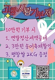 (중앙뉴스타임스 = 방재영 기자) 평창군은 1월 9일 개막하는 제17회 평창송어축제 기간에 현장 홍보부스에서 기부자들을 위한 추가 혜택을 제공한다. 현장에서 평창군에 10만 원 이상 고향사랑기부에 기부한 기부자를 대상으로 3만 원 상당의 송어축제 체험 할인권을 답례품으로 제공하고 더불어 평창 쌀 2kg을 추가로 증정한다. 군은 지역을 대표하는 축제인 평창송어축제와 고향사랑기부제를 연계하여 기부를 독려하기 위해 송어축제체험할인권을 답례품으로 선정했으며, NH농협평창군지부와 ‘농심천심 우리 쌀 소비 촉진 캠페인’의 일환으로 특별 이벤트를 추진한다고 밝혔다. 평창송어축제 매표소 앞 고향사랑기부제 홍보부스에서 선착순으로 평창쌀2kg 증정하며 물량이 소진될 시 조기 종료될 예정이다. 모든 기부자는 연말정산 시 기부 금액 10만 원까지 전액 공제, 10만 원 초과 ~20만 원 이하 44%, 20만 원 초과 시 16.5% 세액공제 혜택을 받을 수 있고, 기부액의 30%만큼 지역 특산품으로 구성된 답례품이 제공된다. 전재준 군 세정과장은 “평창송어축제를 찾는 방문객들이 고향사랑기부에 참여하고 1석 3