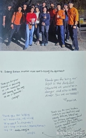 (중앙뉴스타임스 = 방재영 기자) 경기도 구조대원의 활동으로 자칫 생명을 잃을 수도 있는 상황에서 위기를 넘긴 외국인 관광객이 감사 편지를 보낸 사실이 알려져 화제다. 화제의 주인공들은 고양소방서 산악구조대. 9일 경기도북부소방재난본부에 따르면 지난해 11월 북한산에서 조명 장비 없이 야간 하산을 시도하다 조난을 당한 싱가포르 국적 관광객 4명이 지난달 말 고양소방서에 감사 편지를 보냈다. 등산 경험이 부족하고 복장이나 장비도 미흡한 상태였던 이들은 오후 7시경 북한산 약수암 쉼터 인근에서 고양소방서 산악구조대에 발견돼 무사히 집으로 돌아갈 수 있었다. 이들은 싱가포르 귀국 후 한국 구조대에 감동했다며 편지를 보냈다. 4명이 각자 메모 형식으로 쓴 편지에는 “위험한 순간에 도움을 줘서 감사하다”, “한국에서 받은 배려를 평생 잊지 않겠다”며 구조대원을 ‘영웅’(You are our HERO!)이라 표현했다. 서툰 글씨로 “감사합니다!”라는 한글 메시지도 남겼다. 겨울산행 중 고립된 한 50대 남성을 구조한 경기도소방대원에 대한 사연도 인터넷을 통해 알려졌다. 이 남성은 지난해 12월 3