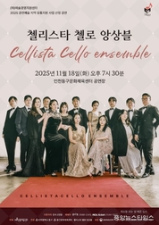 (중앙뉴스타임스 = 방재영 기자) 인천 동구문화체육센터는 오는 18일 오후 7시 30분 '첼리스타 첼로 앙상블' 공연을 선보인다고 3일 밝혔다. 본 사업은 지역 공연장이 우수한 공연예술 콘텐츠를 유치·기획할 수 있도록 지원하여, 지역민의 공연 접근성과 문화 향유 기회를 높이기 위해 추진되고 있다. 공연은 (재)예술경영지원센터가 주최하고 문화체육관광부가 후원하는 ‘2025 공연예술 유통 지원사업’ 선정작으로, 12인의 첼리스트가 한 무대에 올라 깊고 풍성한 첼로의 하모니를 들려줄 예정이다. ‘첼리스타 첼로 앙상블’은 국내 정상급 첼리스트들이 모여 결성된 단체로, 클래식 명곡부터 영화음악·대중음악까지 폭넓은 레퍼토리를 첼로 특유의 깊은 울림으로 재해석하며 관객들의 사랑을 받아왔다. 이번 무대에서는 Popper, Ravel, Bartók, Chopin 등 세계적인 작곡가들의 작품과 작곡가 안성민의 창작곡을 연주하며, 첼로 본연의 음색을 극대화한 풍성한 사운드로 무대를 가득 채울 전망이다. 김찬진 동구청장은 “동구문화체육센터는 다양한 장르의 공연들을 통해 지역의 문화적 감수성을 높이고, 예술로 소통하는 주민 중심의 문화공간으로 자리매김하겠다”고 말했다. 자세한 내용