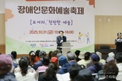 (중앙뉴스타임스 = 방재영 기자) 군포시는 군포시장애인종합복지관 주관으로 10월 31일 장애인센터 내 다목적실에서 2025년 장애인문화예술축제를 개최했다. 이번 축제는 2025년 경기도 장애인 문화예술진흥사업으로 선정되어 경기도와 군포시의 지원으로 장애인과 비장애인이 함께 어우러져 창의적이고 감동적인 공연과 전시가 펼쳐졌다. 하은호 시장과 시낭송동아리 ‘수리담시’회원의 시낭송 공연으로 시작한 행사는 발달장애인으로 이루어진 어울림합창단의 합창공연과 한세대학교 음악학과 학생들의 관현악 공연 등으로 이어졌다. 다채로운 공연과 함께 도예토, 퀼트, 사군자, 미술, 사진 등의 전시는 예술의 무한한 감동을 시민과 함께 나누는 뜻깊은 시간이 됐다. 특히 누구나 함께 즐길 수 있는 캘리그라피와 가죽공예 체험프로그램도 마련되어 예술의 장벽을 낮추고 참여의 폭을 넓혔다. 하은호 군포시장은 “시민 모두가 함께하는 문화예술의 장을 확장하는 계기가 되길 바란다”라며 “앞으로도 장애인 문화예술 지원에 최선을 다해 포용과 화합의 도시를 만들어가겠다”고 말했다.