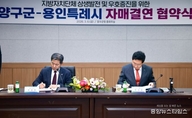 (중앙뉴스타임스 = 방재영 기자) 용인특례시는 6일 강원특별자치도 양구군과 자매결연을 하고, 두 도시의 교류와 발전을 위해 적극 협력하기로 했다. 이상일 시장은 이날 양구군청 중회의실에서 서흥원 군수와 두 도시 간 우의를 증진하고 상호 교류‧협력하는 데 합의하고, 자매결연 협약서에 서명했다. 이번 협약으로 양구군은 시의 16번째 자매도시가 됐다. 이상일 시장은 “양구는 문화예술 분야에서 과감한 투자를 하고 있고, 양구군립박수근미술관은 2023년 양구 출신 박수근 화백의 1956년 작품 ‘가족’을 품었는데 두 도시가 앞으로 가족처럼 잘 지냈으면 한다”며 “이번 협약을 계기로 양 도시가 협력을 강화해서 함께 발전하길 기원한다”고 말했다. 이 시장은 “양구군과 용인시의 훌륭한 농산물들이 양 도시에서 소비하도록 서로 홍보하는 등 협조 체계를 갖추는 노력도 기울이자"라며 "양구에는 테니스장, 축구장 등 스포츠 시설이 아주 잘 갖춰져 있는 만큼 용인의 스포츠팀이나 단체들이 양구를 찾아 훈련하는 등 체육 분야의 협력도 도모하면 좋겠다"고 했다. 서흥원 군수는 “용인의 인프라와 비전이 대한민국 지방자치단체 중에서 가장 선도적 역할을 하고 있다는 생각을 하며, 이번 협약을