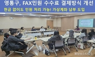 (중앙뉴스타임스 = 방재영 기자) 수원시 영통구가 지난 31일 시민의 민원 편익을 높이기 위해 FAX민원 수수료 결제방식을 전면 개선했다. 앞으로 사립대학교 졸업증명서 등 FAX민원 발급 시에도 현금 외에 가상계좌를 통한 납부가 가능해져, 현금 미소지로 인한 불편이 크게 줄어들 전망이다. 기존에는 주민등록등본, 인감증명서 등 일반 제증명 수수료는 카드나 현금 결제가 가능했지만, FAX민원 중 사립대학 졸업증명서·성적증명서·재학증명서 등은 현금으로만 수납이 가능해 민원인의 불만이 꾸준히 제기됐다. 특히 정부24를 통해 대학 민원을 신청한 뒤 기관을 방문하는 시민 중 카드만 소지한 비율이 50% 이상으로, 현금 결제로 인한 불편 사례가 빈번했다. 이에 영통구는 종합민원과 및 12개 동 행정복지센터 FAX민원 담당자 회의를 열고 ‘세입세출외현금납부(가상계좌) 매뉴얼’을 공유했다. 담당자 의견을 수렴해 시스템 적용 방안을 논의한 결과, 가상계좌를 활용한 결제 절차를 마련해 현금 없이도 민원수수료 납부가 가능하도록 했다. 이번 개선으로 모든 FAX민원 제증명 수수료를 현금, 카드, 가상계좌를 통해 납부할 수 있게 되면서, 민원인의 결제 편의성과 행정 효율성이 동시에