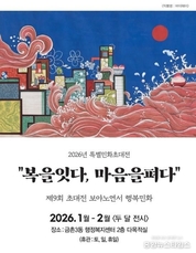(중앙뉴스타임스 = 이광운 기자) 파주시 금촌3동은 2026년 병오년 새해를 맞아 특별 민화 초대전 '2026 복을 잇다, 마음을 펴다'를 개최한다고 전했다. 이번 전시는 금촌3동 행복마을관리소가 문화소외지역 주민들에게 문화 예술 체험의 기회를 제공하고자 행정복지센터 내 유휴공간을 활용해 다목적 공간으로 새롭게 조성한 것을 기념하는 첫 번째 초대전이다. 주민들이 일상 속에서 문화 예술을 향유하고, 교양과 소통의 기회를 누릴 수 있도록 마련됐다. ‘주민이 함께 열어가는 새해, 공동체 회복, 문화적 힐링’을 기획 의도로 한 이번 전시는 문턱 낮은 전시를 통해 누구나 쉽게 예술을 접하고 이웃과 자연스럽게 소통할 수 있는 자리를 제공한다. 전시는 12월 30일 개관 기념행사를 시작으로, 1월 2일부터 2월 27일까지 본격적으로 진행된다. 초대 작가로는 현대적 감각으로 민화를 재해석해 온 노연서 작가가 참여한다. 전시에서는 액운을 막고 복을 기원하는 ‘현대 민화’와, 복을 정성스럽게 싸서 전한다는 의미를 담은 ‘보자기 아트’를 결합한 작품들을 선보일 예정이다. 전통의 미감을 바탕으로 현대적인 감성을 더한 작