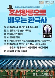 (중앙뉴스타임스 = 이광운 기자) 김포시 풍무도서관은 오는 4월 12일 오후 2시부터 인문학 프로그램 ‘조선왕릉으로 배우는 한국사’를 운영한다고 16일 밝혔다. 이번 프로그램은 도서관의 날(매년 4월 12일)을 기념ㅐ하여 전 연령이 즐길 수 있도록 기획됐다. ‘세종대왕릉의 저주, 단종왕릉에 얽힌 기묘한 이야기’를 주제로, 조선왕릉에 관한 개요, 세종대왕릉의 저주와 영화 ‘왕과 사는 남자’에서 다룬 단종릉에 관한 이야기까지 살펴본다. 강의는 ‘기묘한 한국사’, ‘찌라시 세계사’, ‘찌라시 한국사’ 등을 집필한 김재완 작가가 진행한다. 강의는 3월 27일 오전 10시부터 풍무도서관 홈페이지를 통해 신청할 수 있으며, 김포시민 40명을 선착순으로 모집한다.