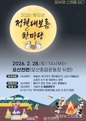 (중앙뉴스타임스 = 이광운 기자) 오산시는 오는 28일 오후 2시부터 오산천 일원(오산종합운동장 뒤편)에서 시민과 함께하는 ‘2026 병오년 정월대보름 한마당’을 개최한다고 26일 밝혔다. 이번 행사는 정월대보름을 맞아 시민들과 함께 한 해의 건강과 안녕을 기원하고 전통문화를 계승하기 위해 마련됐다. ‘달빛에 소원을 담다’를 주제로 열리는 이번 행사는 전통 체험, 공연, 달집태우기, 먹거리장터 운영 등 남녀노소 누구나 즐길 수 있는 다양한 프로그램으로 진행된다. 행사는 오후 2시부터 시작된다. 민속체험 부스에서는 대형 윷놀이와 LED 쥐불놀이 등 전통놀이를 비롯해 연 만들기, 소원지 쓰기 체험이 운영돼 가족 단위 방문객들에게 특별한 추억을 선사할 예정이다. 이어 오후 4시부터는 줄타기 공연 등 흥겨운 전통공연이 펼쳐져 행사 분위기를 한층 끌어올릴 예정이다. 오후 6시에는 기념식과 함께 시민들이 직접 작성한 소원지를 달집에 달고 태우는 ‘달집태우기’ 행사가 진행돼 한 해의 복과 안녕을 기원하는 뜻깊은 시간이 마련된다. 이권재 오산시장은 “정월대보름은 이웃과 함께 새해의 풍요와 평안을 기원하는 의미 있는 세시풍속”이라며 “많은 시민들께서 가족과 함께 행사에 참여