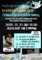 (중앙뉴스타임스 = 이광운 기자) 김포시 마산도서관은 오는 12월 21일 오후 3시, 지웅배 작가와의 만남 프로그램을 3층 다목적실에서 진행한다. '우리는 모두 천문학자로 태어난다', '갈 수 없지만 알 수 있는', '날마다 우주 한 조각' 등을 집필한 지웅배 작가는 현재 세종대학교 교수로 재직 중이며, 유튜브 채널 ‘우주먼지의 현자타임즈’를 운영하는 유튜버로도 활발히 활동하고 있다. 이번 지웅배 작가와의 만남에서는 ‘은하수 너머 우주의 끝을 찾아서’ 라는 주제로, 우리 은하 너머 외부 은하의 존재를 발견하기까지 현대 천문학의 위대한 발견과 역사에 대해 이야기해 볼 예정이다. 프로그램은 김포시 청소년~성인 70명을 대상으로 12월 21일 일요일 15시부터 마산도서관 3층 다목적실에서 진행되며, 11월 24일 오전 10시부터 신청이 가능하다. 김포시 마산도서관 홈페이지 문화행사 신청(모집/행사 부분)을 통한 온라인 신청과 마산도서관 1층 통합데스크 현장신청으로 진행할 예정이며 자세한 사항은 마산도서관 홈페이지를 참고하거나 마산도서관으로 문의하면 된다.