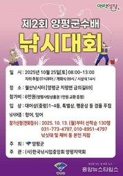 (중앙뉴스타임스 = 이광운 기자) 양평군은 오는 25일 관내 월산낚시터에서 ‘제2회 양평군수배 낚시 대회’를 개최한다고 14일 밝혔다. 이번 대회는 낚시를 통해 군민과 낚시 동호인이 함께 어울리는 축제의 장을 마련하고, 건전한 낚시문화 조성과 지역 경제 활성화를 도모하기 위해 마련됐다. 낚시 어종은 향어와 잉어이며, 참가 신청은 10월 13일부터 선착순 130명까지 가능하다. 참가자들은 당일 현장에서 지정된 구역에서 낚시 실력을 겨루게 되며, 대회에는 대어상(1등 150만 원), 특별상, 행운상 등 다양한 부문에 걸쳐 푸짐한 경품이 준비되어 있다. 전진선 양평군수는 “양평의 맑은 물과 아름다운 자연 속에서 낚시를 즐기며 군민과 낚시 동호인 모두가 편안히 쉴 수 있는 자리가 되길 바란다”며, “이번 대회를 통해 낚시를 매개로 한 관광 활성화와 지역 경제에 활력을 불어넣을 것으로 기대한다”고 말했다. 한편, 양평군은 낚시 대회뿐만 아니라 수산자원 조성 사업, 낚시터 환경 정비 등 건전한 낚시 문화 확립과 수상 생태계 보전 활동을 지속적으로 추진하고 있으며, 앞으로도 친환경적인 낚시 기반 조성을 통해 양평의 깨끗한 물 환경과 낚시 산업 발전을 함께 도모할 계획이다