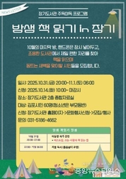 (중앙뉴스타임스 = 이광운 기자) 김포시 장기도서관은 주독야독 프로그램인 '밤샘 책 읽기 인(in) 장기'를 10월 31일 오후 8시부터 11월 1일 오전 6시까지 장기도서관에서 진행한다고 밝혔다. 이번 프로그램은 이동영 작가의 '텍스트힙, 쓰는 사람이 책 읽는 법' 강연을 시작으로 '독서를 하는 이유?' '독서 습관 만드는 법!' '명사들의 책 읽는 법'을 소개하며 어떻게 잘 읽을 것인가에 대해 이야기를 나눈다. 강연 후 장기도서관 종합자료실로 이동해 밤새 책 읽기를 진행한다. 책 읽는 중간 간단한 스트레칭을 할 수 있는 공간과 졸음 쉼터를 마련해 밤샘 책 읽기를 더욱 응원한다. 프로그램 신청은 10월 14일 오전 10시부터 장기도서관 홈페이지 또는 김포시 통합예약시스템을 통해 온라인으로 진행되며, 대상은 김포시민 60명을 선착순으로 모집한다.