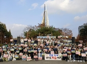 (중앙뉴스타임스 = 이광운 기자) 11월 9일 일산문화광장에서 ‘산황산 골프장 증설 반대 시민문화제가’ 200여명의 시민들이 참석한 가눙데 열렸다. 이번 문화제는 고양시 대표적인 생태 녹지인 산황산 일대 골프장 증설 계획에 반대하는 시민들의 의지를 모르기 위해 마련된 것으로, 지역내 시민사회단체, 종교단체, 정당등이 공동주관했다. 능곡 도시재생사업에서 조직된 아프리카 타악기 젬배동아리의 공연을 시작으로, 공감합창단, 헬로유기농 등 지역내 시민들의 재능기부로 진행된 문화제에서 참가자들은 산황산은 우리의 숨구멍으로 개발이 아닌 보존이 답이다라는 구호를 외쳤다. 행사를 주관한 고양시민사회연대회의 홍영표 공동의장(고양시민회 대표)는 “오늘의 문화제는 단순한 반대 행사가 아니라 우리 아이들에게 물려줄 자연의 가치를 짘미기위한 시민의 약속으로 앞으로도 지역사회가 함께 산황산을 지킬 것”이라고 밝혔다.