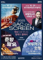 (중앙뉴스타임스 = 이광운 기자) 용인문화재단은 2025년 ‘SAC ON SCREEN’ 사업의 일환으로 '영상으로 만나는 발레와 클래식'을 무료 상영한다고 14일 밝혔다. ‘SAC ON SCREEN’은 예술의전당이 주관하는 공연예술 영상화 프로젝트로, 클래식·발레·연극·무용 등 다양한 장르의 우수 공연을 고화질 영상으로 제공해 현장 공연의 감동을 더 많은 이들과 나누고자 기획됐다. 올해 6월부터 9월까지 ▲클래식 발레 ‘라 바야데르’ ▲지젤 ▲피아니스트 백건우 리사이틀 ▲베를린 필하모닉 카메라타 등 총 4편의 상영이 진행됐으며, 관객들로부터 “예술의전당에서 선보인 수준 높은 공연을 대형 스크린을 통해 생생하게 감상할 수 있었다”, “시간과 공간의 제약 없이 공연예술을 즐길 수 있는 뜻깊은 기회였다”는 등 긍정적인 호응을 얻었다. 이어 10월부터 11월까지는 ▲유니버설발레단 ‘심청’(10.22. 용인문화예술원 마루홀) ▲보컬 마스터 시리즈 III(10.29. 용인시평생학습관 큰어울마당) ▲로맨틱 코미디 오페라 ‘춘향탈옥’(11.19. 용인시평생학습관 큰어울마당) ▲인형극 ‘호두까기 인형’(11.19. 용인문화예술원 마루홀) 등 총 4편이 상영될 예정이다. 용인