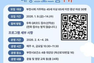 (중앙뉴스타임스 = 방재영 기자) 광명시 시민건강증진센터는 오는 1월 2일부터 9일까지 ‘어르신 건강체조·요가교실’ 수강생을 모집한다. 이번 프로그램은 60세 이상 광명시민을 대상으로 하며, 건강체조 12개 반과 요가 2개 반으로 운영한다. 반별 모집 인원은 약 15명이며, 수업은 주 2회, 회당 1시간씩 진행한다. 참여자는 프로그램 시작 전 혈압, 혈당, 콜레스테롤, 체성분 검사와 기저질환 조사를 받아 건강 상태를 확인한다. 프로그램 종료 후에도 동일한 검사를 실시해 신체 변화와 건강 개선 효과를 점검한다. 신청을 원하는 시민은 신분증을 지참해 광명시시민건강증진센터(광명로 942-1) 4층 건강관리실을 방문하면 된다. 나기효 건강위생과장은 “어르신의 신체 기능을 고려한 맞춤형 수업과 수업 전후 건강 확인을 병행해 안전한 참여 환경을 조성하고 있다”며 “많은 어르신이 꾸준한 운동으로 건강한 일상을 이어가길 바란다”고 말했다. 한편, 2025년 하반기 운영된 동일 프로그램에서는 수강생 158명 가운데 126명(79.7%)의 공복혈당이 감소했고, 97명(61.4%)은 골격근량이 증가했으며,