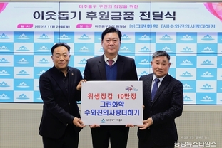 (중앙뉴스타임스 = 방재영 기자) 인천 부평구 십정2동은 24일 동암신협으로부터 김장김치 120상자(총 1천200kg)를 기탁 받았다. 이날 기탁된 김장김치는 지역 내 저소득 홀몸 어르신, 장애인 등 어려운 이웃 120세대에 전달됐다. 동암신협(이사장 정대상)은 지역사회 나눔을 위해 지속적인 관심을 갖고 매년 사회공헌 활동을 펼치고 있다. 김장 및 쌀 나누기, 사랑의 집수리, 겨울철 이불 지원 등 다양한 사회공헌 활동을 통해 지역사회에 사랑과 희망을 전하고 있다. 정대상 이사장은 “올해도 지역사회와 함께하는 마음으로 김장김치를 전달하게 돼 뜻깊다”며 “앞으로도 꾸준한 나눔 활동으로 지역사회에 보탬이 되고자 한다”고 밝혔다. 이수연 십정2동장은 “지역 내 어려운 이웃을 위한 동암신협의 지속적 관심과 지원에 감사드린다”며 “동에서도 지역 복지 향상을 위해 최선을 다하겠다”고 전했다.