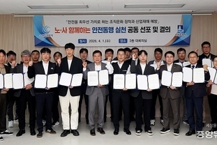 (중앙뉴스타임스 = 방재영 기자) 수원도시공사(사장 이영인)는 5일 오후 더함파크 대회의실에서 ‘2026년도 노·사 공동 인권경영헌장 선포식’을 가졌다. 노·사는 ‘존중받을 권리 실현을 위한 인권경영’을 위해 다양한 인권 정책을 추진할 방침이다.