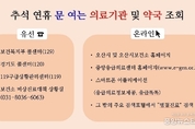 (중앙뉴스타임스 = 방재영 기자) 경기 오산시는 다가오는 추석 연휴 기간 시민들의 건강을 보호하고 의료 공백을 최소화하기 위해 오는 3일부터 9일까지 ‘비상진료체계’를 본격 가동한다고 1일 밝혔다. 연휴 기간 동안 오산한국병원과 조은오산병원 응급실은 24시간 운영되며, 응급환자 발생 시 신속한 진료가 가능하다. 또 소아환자를 위한 달빛어린이병원(서울어린이병원, 웰봄병원)도 휴무 없이 오전 9시부터 오후 6시까지 진료를 이어가 아동 보호에 공백이 발생하지 않도록 할 예정이다. 시는 일반 진료 수요에 대비해 충분한 수의 병·의원과 약국을 ‘문 여는 의료기관 및 약국’으로 지정해 운영한다. 오산시보건소는 연휴 기간 내내 비상진료대책 상황실을 설치·운영하며, 지정 의료기관 및 약국 운영 현황을 점검하고 응급환자 진료가 원활히 이뤄지도록 지도·감독을 강화할 계획이다. 시 관계자는 “연휴 중 의료기관 이용 불편을 최소화할 수 있도록 다각적인 대비를 했다”며 시민들의 적극적인 활용을 당부했다. 한편, 추석 연휴 기간 이용 가능한 의료기관과 약국 정보는 ▲오산시 및 보건소 홈페이지 ▲중앙응급의료센터 홈페이지(www.e-gen.or.kr) ▲스마트폰 앱(응급의료정보제공, 응