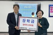 (중앙뉴스타임스 = 방재영 기자) 라의숙 군포시 궁내동통장협의회장은 10월 1일 군포e비즈니스고등학교에 장학금을 전달하며 지역 청소년들의 꿈을 응원하는 뜻깊은 나눔을 실천했다. 이번 장학금은 라의숙 통장이 ‘궁내동 마을의제 발굴 경진대회’에서 금상을 수상하며 받은 상금 50만원 전액을 기부한 것으로 지역사회 발전을 위한 아이디어가 다시 지역 인재를 위한 지원으로 이어졌다는 점에서 더욱 의미가 깊다. 장학금은 군포e비즈니스고등학교 내 우수한 학생들에게 수여될 예정이다. 라의숙 통장은 평소 지역사회를 위한 다양한 활동에 앞장서며 교육·복지·공익 분야에서 꾸준한 기여를 이어오고 있다. 이번 장학금 기부 역시 지역 청소년들의 학업과 미래를 응원하는 실천적 나눔의 일환으로 그녀의 지역사랑이 고스란히 담겨 있다. 라의숙 회장은 “마을을 위한 고민이 다시 학생들을 위한 희망으로 이어져 기쁘다”며 “앞으로도 지역 청소년들을 위해 학생들의 학업 성취를 응원하는 지속적인 나눔활동과 관심을 이어가겠다”고 전했다.