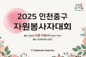 (중앙뉴스타임스 = 방재영 기자) 인천중구자원봉사센터는 오는 10일 오후 2시 인천중구문화회관 공연장에서 ‘2025 인천중구자원봉사자 대회’를 개최한다고 밝혔다. 이번 행사는 한 해 동안 지역 곳곳에서 나눔과 봉사를 실천한 자원봉사자들을 격려하고, 자원봉사 활동의 가치 확산과 참여 분위기 조성을 위해 마련됐다. 행사에는 중구청장, 중구의회 의장을 비롯한 지역 내 주요 기관·단체장, 자원봉사자 등 500여 명이 참석할 예정이다. 이번 대회는 1985년 UN이 지정한 ‘세계자원봉사자의 날(12월 5일)’을 기념해 개최되는 것이다. 올해로 23회를 맞는 중구 자원봉사자 대회는 식전 공연을 시작으로 자원봉사활동 영상 상영, 내빈 소개, 우수 자원봉사자 시상, 인증패·인증서 수여, 축사, 경품추첨 등의 순서로 진행된다. 식전 공연은 ‘블리스치어리더팀’이 맡아 화려한 안무와 완성도 높은 퍼포먼스, 탄탄한 팀워크로 활기찬 무대를 선보이며 대회의 분위기를 한층 고조시킬 예정이다. 또한 본 행사는 대한민국 유일의 올라운드 스포츠 MC로 알려진 허지욱 전문 MC가 진행을 맡아, 더 역동적이고