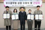 (중앙뉴스타임스 = 방재영 기자) 인천 동구는 지난 17일 ‘2025년 민원처리 마일리지 운영 우수공무원’을 선정·포상하고 관련 간담회를 개최했다고 밝혔다. 이번 포상은 올해 신속한 민원 처리에 기여한 공직자를 격려하기 위해 마련됐다. 여성보육과 이진형 주무관이 민원처리 최우수 공무원에 선정됐으며, 이어 우수 공무원에는 아동청소년과 김은지 주무관, 도시경관과에 함인숙 주무관이 선정됐다. 교통과 신지혜 주무관, 건축과 고다영 주무관, 도시경관과 서기원 주무관은 장려상을 받았다. 이날 김찬진 동구청장은 민원처리 우수공무원에게 상장을 수여하고 담당자들로부터 다양한 민원 사례 및 고충 사항을 청취한 뒤 민원 업무 개선 방안 및 민원서비스 향상 등에 대해 의견을 나눴다. 김찬진 동구청장은 “다양한 민원이 지속적으로 증가하고 있는 상황에서, 이를 해결하기 위해 묵묵히 최선을 다해주는 직원 여러분들의 노고에 깊이 감사드린다”며 “직원들의 사기진작과 구민 감동 행정서비스 제공을 위해 더욱 노력하겠다”고 말했다.
