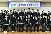(중앙뉴스타임스 = 방재영 기자) 수원시 영통구는 지난 26일 영통구청 2층 상황실에서 신규 공직자에게 임용장을 수여했다. 이번 임용식에는 신규 공직자 23명이 참석한 가운데 ▲임용장 수여 ▲격려사 ▲기념촬영 순으로 진행됐다. 특히 임용장에는 청렴행정 실천문이 함께 기재돼 공직자로서의 책임과 윤리 의식을 되새기는 계기가 됐다. 영통구는 신규 공직자들에게 임용장과 함께 꽃을 전달하며 공직 입문을 축하하고, 지역사회 발전을 위해 성실하고 책임감 있게 근무해 줄 것을 당부했다. 장수석 영통구청장은 격려사를 통해 “공직자로서 첫 출발을 진심으로 축하드린다”며 “처음에는 낯설고 어려운 순간도 있겠지만, 서로 의지하며 차근차근 성장해 나가길 바란다”고 말했다. 영통구는 앞으로도 신규 공직자들이 안정적으로 공직에 적응하고 역량을 발휘할 수 있도록 지속적인 교육과 지원을 이어갈 계획이다.