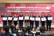 (중앙뉴스타임스 = 방재영 기자) 홍천군은 2일 강원특별자치도, 춘천시와 함께 춘천 ICT벤처 센터에서 「강원 첨단 바이오 오픈 이노베이션 프로그램」 업무협약식과 사업설명회를 개최하고, 올해부터 사업을 본격 확대 추진한다고 밝혔다. 이번 협약식에는 앱티스, 휴젤을 비롯해 강원테크노파크, 스크립스코리아항체연구원, 춘천바이오산업진흥원, 강원대학교 산학협력단 등 민관 산학연 9개 협력 주체가 참여했다. 홍천군은 이번 협약을 통해 홍천 국가항체클러스터를 중심으로 기업 지원, 연구 협력, 기술 검증 등 각 기관의 역량을 결집해 도내 바이오산업을 체계적으로 성장시키기 위한 강력한 협력체계(거버넌스)를 구축할 계획이다. 이날 사업설명회에서 홍천군은 별도의 발표 세션을 통해 홍천군만의 바이오기업 지원 정책을 공유했다. 특히 이번 프로그램이 2030년까지 운영됨에 따라, 군은 항체 중심의 신약 개발 분야에서 관내 기업들이 실질적인 혜택을 볼 수 있도록 적극 지원할 방침이다. ‘오픈이노베이션’ 전략은 대기업의 인프라와 중소, 벤처기업의 기술력을 결합하는 방식으로, 신약 개발 시 발생하는 막대한 비용과 시간 손실 우려를 줄일 수 있어 홍천군 바이오 생태계 조성에 핵심적인 역할을
