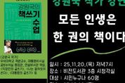 (중앙뉴스타임스 = 이광운 기자) 평택시 비전도서관은 오는 11월 20일 저녁 7시 '강원국의 책 쓰기 수업'의 강원국 작가를 초청하여 ‘모든 인생은 한 권의 책이다’를 주제로 야간 인문학 강연을 진행한다. 작가의 글쓰기 비법이 담겨 있는 '강원국의 책 쓰기 수업' 강연을 통해 시대가 요구하는 책 쓰기, 책을 쓰는 방법, 책을 쓰면 얻는 것들을 통해 ‘책 쓰기’를 위한 구체적인 방법을 나누면서 글쓰기를 넘어 책 쓰기까지 도전하고 싶은 사람들에게 글쓰기 방법은 물론 자신감과 용기를 심어줄 것으로 기대된다. 강원국 작가는 대통령비서실 공보수석실 행정관과 연설비서관을 역임했으며 40여 년간 글을 쓰며 여러 권의 글쓰기 책을 펴냈다. 지은 책으로는 '대통령의 글쓰기', '강원국의 글쓰기', '나는 말하듯이 쓴다', '강원국의 필사집' 등이 있다. 강연은 도서관 누리집에서 신청할 수 있다.