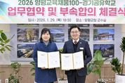 (중앙뉴스타임스 = 방재영 기자) 양평군은 지난 29일 지역 중심의 미래교육 실현과 교육 통합 지원 체계 구축을 위해 양평교육지원청(교육장 여미경)과 ‘양평교육 채움 100–경기공유학교’ 업무협약 및 부속합의를 체결했다. 이번 협약은 지역과 학교의 특성을 살린 교육 환경을 조성하고, 학생의 전인적 성장을 지원하기 위한 협력 체계를 강화하고자 마련됐다. ‘양평교육 채움 100’은 △교육 기회 100% 채움 △사람의 가능성 100% 성장 지원 △친환경 교육 생태계 100% 완성이라는 의미를 담은 양평군 교육협력센터의 새로운 교육 브랜드다. 양평군은 모든 학생에게 균형 잡힌 교육 기회와 특색 있는 교육 활동을 제공하기 위해 2019년부터 본 사업에 참여해 왔으며, 참여 지자체 중 비교적 짧은 기간에도 불구하고 도시와 농촌 간 교육격차 해소와 지역 교육공동체 역량 강화를 위해 지난 7년간 총 311억 원을 지원했다. 이번 부속합의를 통해 양평군과 양평교육지원청은 △(자율) 교육 자치 활성화를 통한 함께 성장하는 교육공동체 △(균형) 지역사회 연계 교육을 통한 조화롭게 성장하는 교육공동체 △(미래) 지역의 특색에 기반한 글로컬 융합 인재 양성 등 3대 추진 목표를 바