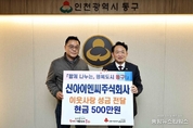 (중앙뉴스타임스 = 방재영 기자) 인천 동구 소재 신아이엔씨㈜(대표 이성필)는 동구에 이웃사랑 성금 500만 원을 기탁했다고 밝혔다. 기탁금은 동구의 사회복지 공동모금회를 통해 관내 저소득층, 독거노인, 취약계층 아동 등 도움이 절실한 이웃들을 위한 복지사업에 소중하게 사용될 예정이다. 이성필 신아이엔씨 대표는 “기업의 성장이 곧 지역사회의 발전이라는 생각으로 나눔을 실천하였다”며, “작은 정성이지만 동구 주민들이 따뜻한 연말을 보내는 데 조금이나마 도움이 되기를 바란다”고 말했다. 김찬진 동구청장은 “경기 침체 등 어려운 여건 속에서도 지역사회를 위해 따뜻한 나눔을 실천해 준 신아이엔씨에 감사드린다”며, “보내준 소중한 성금이 꼭 필요한 곳에 잘 전달되어 우리 이웃들이 희망을 얻을 수 있도록 하겠다”고 말했다.