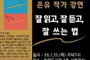 (중앙뉴스타임스 = 방재영 기자) 평택시 비전도서관은 다음 달 1월 15일 저녁 7시 은유 작가를 초청하여 ‘잘 읽고, 잘 듣고, 잘 쓰는 법’을 주제로 야간 인문학 강연을 진행한다. ‘잘 읽고, 잘 듣고, 잘 쓰는 법’은 세상에 흘러 다니는 말을 자신의 언어로 기록하는 일, 글을 쓰는 것에 책 읽기와 인터뷰가 어떻게 도움이 되는지 알아보는 강연으로, 은유 작가의 최근 출판작 '아무튼, 인터뷰' 등 작가의 읽고, 듣고, 쓰는 작업을 토대로 글쓰기에 관해 이야기 나눠보는 시간이 될 것으로 기대된다. 은유 작가는 지금까지 글쓰기 분야를 비롯해 우리 사회의 소외된 목소리를 생생하게 기록하는 글쓰기와 인터뷰를 통해 사회적 소수자들이 자신의 목소리를 낼 수 있도록 돕는 일을 해왔다. 지은 책으로는 '글쓰기의 최전선', '쓰기의 말들', '아무튼, 인터뷰', '은유의 글쓰기 상담소', '알지 못하는 아이의 죽음', '있지만 없는 아이들', '해방의 밤' 등이 있다.