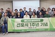 (중앙뉴스타임스 = 방재영 기자) 평택시 배다리근린공원을 생태공원으로 선포한 지 1주 년을 맞아 지난 14일, 시민 활동 모임인 ‘배다리생태지기’에서 배다리생태공원에 서식하는 다양한 야생동물들의 사계절 모습과 꼬리명주나비 서식지 관리 등을 홍보하고, 폐현수막으로 만든 쓰레기수거 가방으로 활용하여 환경정화를 하며 기념 활동을 마무리했다. 이날 기념행사에는 서현옥 경기도의회 의원, 평택시의회 김산수 복지환경위원장, 최준구 의원, 최선자 의원, 주민 등 40여 명이 참석했다. 정장선 평택시장은 국외 출장으로 인해 영상으로 시민들이 자발적으로 야생동물을 지켜주심에 감사함을 전했다. 배다리생태공원은 금개구리, 맹꽁이, 꼬리명주나비와 같은 멸종위기종이 서식하고 있으며, 흰뺨검둥오리, 큰부리큰기러기 등의 조류도 관찰할 수 있다. 이에 시민 활동 모임인 ‘배다리생태지기’에서 자발적으로 배다리 야간 생태 탐사 활동, 생태교육, 생태전시회 등을 추진하여 일반 시민들의 생태 감수성을 높이고 있다.