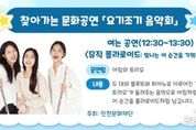 (중앙뉴스타임스 = 방재영 기자) 인천시교육청화도진도서관은 오는 25일 오후 12시 30분, 평생학습1실에서 찾아가는 문화공연 ‘요기조기 음악회’를 개최한다고 14일 밝혔다. 이번 공연은 인천문화재단이 주관하는 ‘삶의 일상 공간 예술화 프로젝트’의 일환으로 문화와 예술이 일상이 되는 즐거운 도시 인천을 구현하기 위해 마련됐다. 공연에는 ‘아침의 트리오’가 참여해 두 대의 플루트와 한 대의 피아노로 구성된 편안하고 싱그러운 음악을 선보일 예정이다. 참여 신청은 10월 15일 오전 9시부터 화도진도서관 누리집에서 가능하며 자세한 사항은 화도진도서관 독서문화과로 문의하면 된다.