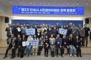 (중앙뉴스타임스 = 이광운 기자) 안성시는 지난 19일 제3기 안성시 시민참여위원회 정책 발표회를 개최하여 시민이 직접 발굴·제안한 정책에 대해 공유하고 우수 제안 정책을 선정하는 시간을 가졌다. 총 7개 분과로 구성된 안성시 시민참여위원회는 지난 1년 6개월간 정책 연구 활동을 통해 정책을 도출했으며, 각 분과에서 제안한 정책은 ▲Safety 안성, 시민이 안전한 도시 만들기(공공혁신분과) ▲안성시 평생학습도시에 따른 평생교육 강사 플랫폼 구축(교육특화분과) ▲안성시 한우산업 탄소중립 모니터링 시스템 구축(미래농업분과) ▲안성시민을 위한 태양광발전 5개년 계획(생태도시분과) ▲전통 문화 예술인들을 위한 창작공간 확보(문화도시분과) ▲안성, 사랑 흔들바위 관광지 조성(문화도시분과) ▲더불어 이동하는 자유로운 안성(생활복지분과) ▲안성시 기업지도와 멘토시스템 구축(산업진흥분과) ▲지속 가능 관광 산업 개발(산업진흥분과) 등 9건이다. 분과별 제안에 대한 우수 정책 선정은 사전 시민공감도 조사 점수 및 현장심사 점수를 합산하여 진행했으며, 최우수는 문화도시분과, 우수는 교육특화·생태도시·생활복지분과, 장려는 공공혁신·미래농업·산업진흥분과로 결정됐다. 당일 발표회