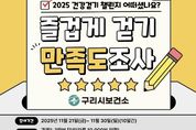 (중앙뉴스타임스 = 방재영 기자) 구리시는 시민의 걷기 활동 참여 만족도를 파악하고 향후 건강생활 실천 사업에 반영하기 위해 ‘2025년 즐겁게 걷기 만족도 조사 참여하기’ 챌린지를 오는 21일부터 30일까지 10일간 운영한다고 20일 밝혔다. 이번 조사는 구리시 건강 걷기 사업의 일환으로, 시민들의 걷기 실천율과 프로그램 만족도, 개선 사항 등을 조사하여 향후 관련 정책 및 사업 추진의 기초자료로 활용될 예정이다. 참여자는 ‘워크온(WalkOn)’ 앱을 통해 본인의 걸음 수를 확인하고, 미션형 걷기 챌린지와 지역 기반 커뮤니티 활동, 경품 이벤트 등에 참여할 수 있다. 챌린지 참여 방법은 ①워크온 앱 설치 ②구리시 공식 커뮤니티 ‘즐거운 걷기, 더 행복한 건강생활’ 가입 ③챌린지 기간 3만 보 달성 ④‘알아보기’ 버튼 또는 설문조사 참여하기 배너 클릭 후 설문 응답 순으로 진행된다. 구리 시민이면 누구나 참여할 수 있으며, 미션을 달성한 참가자 가운데 추첨을 통해 100명에게 모바일 음료 쿠폰이 제공된다. 백경현 구리시장은“걷기는 누구나 쉽게 실천할 수 있는 최고의 건강 운동”이라며 “이번 만족도 조사를 통해 시민의 의견을 폭넓게 수렴하고, 더 즐겁고 지속