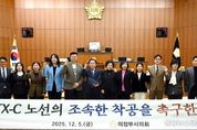 (중앙뉴스타임스 = 방재영 기자) 의정부시의회는 5일 수도권 북부의 오랜 숙원인 GTX-C 노선의 조속한 착공을 촉구하는 성명서를 발표했다. GTX-C 노선은 양주시 덕정역에서 수원역까지 연결되는 국가철도망으로 교통 불편 해소와 지역 균형발전을 위해 반드시 추진되어야 할 국가 핵심사업이다. 지난해 1월, 의정부시청 다목적체육관에서 GTX-C 노선 착공 기념식을 개최했으나 사업 추진 과정에서 정부가 민간사업자와의 공사비 조정 문제 등 핵심 현안을 해결하지 못해 사업이 지연되면서 지역 발전의 추진 동력 또한 오랜 기간 제자리걸음을 하고 있다. 이날 시의원들은(김연균, 권안나, 김현채, 정미영, 김태은, 김현주, 최정희, 이계옥, 강선영, 정진호, 김지호, 조세일 의원) 47만 의정부 시민을 대표하여, GTX-C 사업의 지연으로 수도권 교통 불균형이 지속되고 시민의 이동권 개선이 지체되고 있는 현 상황에 깊은 유감을 표하며, GTX-C의 신속한 착공이 국가가 반드시 이행해야 할 책임임을 천명했다. 김연균 의장은 “정부와 관계기관이 약속한 바를 책임 있게 이행할 것을 강력히 촉구하며”, “앞으로도 GTX-
