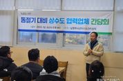 (중앙뉴스타임스 = 방재영 기자) 남양주시는 지난 12월 3일 다가오는 겨울철 한파로 인한 동파 및 누수 발생에 대비해, 상수도 협력업체들과 간담회를 개최했다고 밝혔다. 이날 간담회에는 수도과장, 급수팀장, 누수방지팀장 등 시청 관계자를 비롯해 상수도 급수공사를 대행하는 20개 협력업체 관계자가 참석했다. 시는 △민원 현장 관리 △작업자 안전 교육 및 안전관리 △누수복구 공사 당부사항 등을 전달했다. 이어 협력업체들의 건의사항을 청취하고, 해소 방안을 마련하는 등 상호 협력체계 강화를 위한 개선 방안을 함께 논의했다. 이와 함께 시는 한파로 인한 동파 피해를 최소화하기 위해 상수도 시설물을 사전에 점검하기로 했다. 또한 누수 등 각종 상수도 사고 발생 시에는 휴일과 야간에도 비상근무를 통해 시민 불편을 최소화하는 대응 방안도 함께 논의됐다. 김춘 수도과장은 “시민들께 안전하고 깨끗한 생활용수를 제공할 수 있도록 늘 협조해 주심에 감사드리며, 올해도 수도과와의 유기적인 협력을 통해 시민들이 보다 만족스러운 수돗물을 공급받을 수 있도록 힘써 주시기를 부탁드린다”고 전했다.