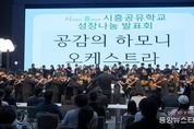 (중앙뉴스타임스 = 방재영 기자) 시흥교육지원청이 지난 25일 서울대학교 시흥캠퍼스 교육협력동 컨퍼러스 홀에서 시흥공유학교 성장나눔 발표회를 열었다. 시흥굥유학교는 시흥 교육의 특색 및 시흥 학생들의 관심사와 요구를 바탕으로, 지역의 교육자원에 기반한 다양한 학교밖 교육활동을 제공함으로써 학생 개인별 맞춤형 교육을 실현하는 지역사회 협력 교육 플랫폼이다. 시흥굥유학교는 학생이 하고 싶은 것에서 출발하며, 학생의 흥미와 주도적 참여를 통해 모든 학생이 각자의 꿈을 이루고 미래를 설계할 수 있도록 지원하고 있다. 올해 시흥공유학교는 관내 학생들의 수요조사를 바탕으로 AI·디지털, 글로컬 언어, 문화예술, 생태·환경, 수리·융합과학, 인문·사회, 인성, 진로 , 체육의 9개 영역에서 지역의 인적·물적 교육자원을 연계한 지역맞춤형을 중심으로 학생기획형, 대학연계형, 학점인정형, 수업위탁형, 공헌형 등으로 운영됐다. 이날 성장나눔 발표회는 공감의 하모니 오케스트라 연주를 시작으로 다가치 음악반, 나르샤 치어리딩, 글로벌 아티스트 영어 뮤지컬 등의 공연이 진행됐다. 또한 미래공작소, 디저트 요리학교, 초록미션, 핸드메이드 공예, 뮤직 크리에이터, 예명원, 진로찾기, 풋