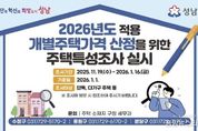 (중앙뉴스타임스 = 방재영 기자) 성남시는 내년 1월 16일까지 단독·다가구·상가주택을 대상으로 ‘2026년 1월 1일 기준 개별주택가격 산정’을 위한 주택특성조사를 실시한다고 21일 밝혔다. 이번 조사는 총 2만8970호(수정구 1만5829호, 중원구 7754호, 분당구 5387호)를 대상으로 진행된다. 정확한 주택특성 파악을 위해 조사요원은 건축물관리대장, 토지대장 등 행정정보를 사전에 확인한 뒤 현장을 방문해 △토지 형상 △방위 △도로 접면 상태 등 토지특성과 △주택 이용 상황 △건물구조 △지붕 형태 △증·개축 여부 등 건물 특성을 조사할 예정이다. 조사 완료 후에는 결과를 반영해 개별주택가격을 산정하고, 한국부동산원의 검증을 거쳐 주택 소유자와 이해 관계인에게 열람 기회를 제공한다. 이후 의견 제출 절차와 부동산가격공시위원회 심의를 통해 내년 4월 30일 개별주택가격을 최종 결정·공시할 예정이다. 성남시 관계자는 “개별주택가격은 국세·지방세, 건강보험료 등 각종 공적 업무의 기초자료로 활용되는 중요한 지표”라며 “정확한 조사를 위해 조사요원의 현장 방문이 필수적인 만큼 시민 여러분의 적극적인 협조를 부탁드린다”고 말했다.