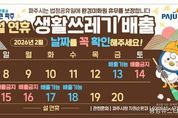 (중앙뉴스타임스 = 방재영 기자) 파주시는 2026년 설 연휴 기간 동안 환경미화원의 휴무를 보장하고 안정적인 생활 쓰레기 수거체계를 운영하기 위해 일부 기간 생활 쓰레기 수거를 중단한다. 시에 따르면 오는 2월 14일부터 17일까지는 생활폐기물 배출이 금지되며, 2월 18일부터 배출이 가능하다. 배출이 허용되는 날에도 배출 시간은 18시(일몰) 이후로 제한되며, 낮 시간대 배출은 금지된다. 다만 운정신도시 내 자동집하시설이 설치된 지역은 연휴 중에도 일반·음식물 쓰레기 배출이 가능하다. 파주시는 설 연휴를 대비해 시민 생활과 밀접한 도시환경 개선을 위해 읍면동별로 시민 참여형 환경 정비 활동인 ‘우리동네 새단장’과 연계한 대청소를 추진해 마을 단위 환경 정비가 확산될 수 있도록 통장단·지역단체 등과 함께 시민 참여를 독려해 나갈 계획이다. 또한 주요 취약지역을 중심으로 쓰레기 무단투기 집중 단속을 병행해, 연휴 대비 환경 정비를 강화해 시민과 방문객이 체감할 수 있는 깨끗한 도시 이미지를 조성해 나갈 방침이다. 아울러 시민 불편을 최소화하기 위해 연휴 기간 중 쓰레기 관리 상황반을 운영하고, 청소 대행업체와의