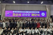 (중앙뉴스타임스 = 방재영 기자) 안산시는 지난 29일 안산상공회의소 그레이트컨벤션에서 ‘제36회 경기도생활체육대축전 및 제106회 전국체육대회 안산시 선수단 해단식’을 개최하고 안산시를 빛낸 선수단의 노고를 격려하는 자리를 마련했다고 30일 밝혔다. 이날 해단식에는 허남석 안산시 부시장을 비롯해 이광종 안산시체육회장, 출전 종목 회장과 지도자 및 선수 등 180여 명이 참석했으며 ▲성적 보고 ▲상배 및 메달 봉납 ▲격려사 등의 순서로 진행됐다. 안산시 선수단은 지난 23일 부산에서 막을 내린 제106회 전국체육대회에서 금메달 8개, 은메달 13개, 동메달 10개 등 총 31개 메달을 획득하며 경기도의 종합우승(총득점 66,595점)에 기여했다. 특히, 지난해 대비 2.7%p 이상 기여도가 상승했으며(4.77%→7.54%), ▲육상 ▲펜싱 ▲유도 ▲씨름 ▲수영 등에서 좋은 성과를 거뒀다. 아울러, 지난달 파주에서 열린 제36회 경기도생활체육대축전에서는 보디빌딩, 육상, 체조, 배드민턴 등에서 금 17개, 은 25개, 동 25개를 기록하며 생활체육에서도 우수한 성과를 거뒀다. 이민근 안산시장은 “안산