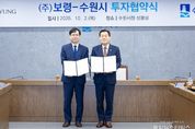 (중앙뉴스타임스 = 방재영 기자) 수원특례시가 ㈜보령과 민선 8기 22호 투자협약을 체결했다. 2일 시청 상황실에서 열린 협약식에는 이재준 수원시장, ㈜보령 임종래 부사장 등이 참석했다. ㈜보령은 광교에 있는 중앙연구소를 확대하고, 적극적으로 투자하기로 했다. 수원시는 중앙연구소 확장이 원활하게 진행될 수 있도록 행정·재정 지원을 한다. ㈜보령은 국내 최초 고혈압 신약 ‘카나브’를 비롯해 국민 건강에 필수적인 의약품을 개발, 공급하고 있는 기업이다. 지난해 연결 기준 매출 1조 171억 원을 기록했으며, 국내 제약사 중 항암제 시장 점유율 1위를 기록하는 등 제약사업에서 선도적인 성과를 내고 있다. ㈜보령 임종래 부사장은 “수원에서 더 발전해서 양질의 일자리를 창출하고, 지역사회에 이바지하는 기업이 될 것”이라며 “이재준 시장님께서 수원을 첨단과학연구도시로 만들겠다고 하셨는데, ㈜보령이 도움이 되도록 노력하겠다”고 말했다. 이재준 수원시장은 “국민들에게 친근한 회사인 ㈜보령이 수원에서 세계적인 바이오 기업으로 성장하길 바란다”며 “㈜보령이 꾸준히 성장할 수 있도록, 수원시가 적극적으로 지원하겠다”고 약속했다. 이어 “도움이 필요한 부분이 있으면 언제든지 수원