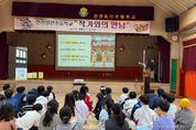 (중앙뉴스타임스 = 방재영 기자) 광주 고산별빛초등학교는 도서관의 날(4월 12일), 장애인의 날(4월 20일), 세계 책과 저작권의 날(4월 23일)을 맞아 ‘책사랑 주간’을 운영하며 독서 문화 확산과 상호 존중의 학교 문화 조성에 나섰다. 행사 기간 등교 시간에는 ‘책은 좋은 친구’ 노래가 울려 퍼지는 가운데, 학생 도서부원 10명이 “친구야, 책 읽는 모습이 멋지다”라는 현수막 문구를 수어로 표현하며 등교하는 학생들을 맞이했다. 이번 수어 퍼포먼스는 독서 흥미를 높이는 동시에 장애 공감 문화를 자연스럽게 체험할 수 있는 기회를 제공했다. 책사랑 주간 동안 1층 책마루 도서관에서는 ‘존중’을 주제로 한 참여형 프로그램이 운영된다. 학생들은 관련 도서를 읽고 사실을 찾는 ‘콕콕 질문’과 생각을 정리하는 ‘곰곰 질문’을 작성하는 ‘딱 두 줄만!’ 활동에 참여한다. 또한 연체로 도서 대출이 제한됐던 학생들의 대출 정지를 해제하는 ‘묶인 책에 날개 달아주기’ 프로그램을 통해 모든 학생이 다시 독서 활동에 참여할 수 있도록 지원한다. 이와 함께 도서관 포스터 공모전, 희망 도서 신청, 팝콘데이 등 다양한 프로그램이 오는 4월 22일까지 이어져 학생들에게 즐거운 도