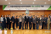 (중앙뉴스타임스 = 방재영 기자) 수원시 어린이급식관리지원센터는 7일 동남보건대학교 대학본부 강당에서 개소 10주년 기념행사와 힐링콘서트를 열었다. 행사에는 식생활안전관리원, 동남보건대학교 관계자, 수원시의원, 어린이급식소 원장과 조리사 등이 참석해 지난 10년간의 성과를 공유하고, 우수 어린이급식소를 시상했다. 팝페라 그룹 ‘비바체’와 시립보훈어린이집 어린이합창단이 축하공연을 했다. 조리사를 대상으로 ‘수준별 직무교육(열매편)’도 진행했다. 손춘영 센터장은 “많은 분의 관심과 협력 덕분에 센터가 10년 동안 성장할 수 있었다”며 “앞으로도 체계적인 관리와 지원으로 어린이에게 안전하고 건강한 급식을 제공하겠다”고 말했다.