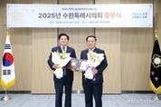 (중앙뉴스타임스 = 방재영 기자) 수원시의회 정종윤 의원(더불어민주당, 행궁·지·우만1·2·인계동)이 31일 수원시의회 다목적실에서 개최된 ‘2025년 수원기자클럽 의정대상 시상식’에서 의정대상을 수상했다. 정종윤 의원은 청년 의원으로서 젊은 감각과 남다른 열정으로 지역사회와 제12대 수원시의회에 활력을 불어넣어 왔다. 이번 수상은 정 의원이 주민들의 숙원사업과 생활 속 문제 해결을 위해 끊임없이 현장을 누비며 적극 소통한 데 따른 것이다. 정 의원의 보여준 ‘젊은 정치인의 발로 뛰는 의정활동’은 새로운 정치에 대한 시민들의 기대를 실현하는 데 크게 공헌했다는 평가를 받았다. 정 의원은 “청년 의원도 지역과 현장에서 충분한 강점이 있다고 봐주셔서 매우 감사하다”면서, “새해를 하루 앞두고 뜻깊은 상을 받게 되었는데, 병오년 새해에도 지역을 위해 힘찬 말처럼 더 열심히 뛰겠다”고 전했다.