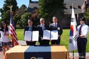 (중앙뉴스타임스 = 방재영 기자) 평택시의회는 22일 미국 애니 라이트 스쿨에서 열린 협약식에 참석해 양해각서(MOU)를 체결하며, 평택국제학교 설립을 공식화했다. 이날 협약식에는 강정구 평택시의회 의장, 정장선 평택시장, 애니 라이트 스쿨 데이비드 오버튼 이사장, 제이크 과드놀라 교장을 비롯한 학교 관계자, 학부모, 학생, 지역 인사들이 함께했다. 협약식에 이어 열린 리셉션에는 메를린 스트릭랜드 연방 하원의원, 데니 헥 워싱턴주 부주지사, 라이언 멜로 피어스 카운티 행정수반 등 지역 주요 인사들이 참석해 지역 협력을 논의했다. 강정구 의장은 “오늘 양해각서(MOU) 체결을 계기로 평택국제학교 설립에 필요한 실무적 협의를 완료하고 교육환경 선진사례를 직접 확인함으로써 평택시의 글로벌 교육환경이 조속히 조성되기를 바란다”라며 “시민들에게 실질적인 혜택이 돌아가도록 꼼꼼히 점검하고 정책에 반영하겠다”고 밝혔다.