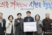 (중앙뉴스타임스 = 방재영 기자) 군포시는 지난 9일, 안양·군포·의왕·과천 지역에서 활동하는 건축사 모임인 안양지역건축사회로 부터 현금 100만원을 기탁받았다. 안양지역건축사회는 180여명의 회원이 있으며 기금을 마련하여 연말이면 군포시에 성금을 기탁하고 있으며 “취약계층이 길고 추운 겨울을 안전하고 따듯하게 보내는데 도움이 됐으면 좋겠다”고 말했다. 하은호 군포시장은 “매년 겨울나기에 어려움이 있는 이웃을 위하여 사랑과 나눔을 실천하는 안양지역건축사회에 진심으로 감사드리며, 취약계층에게 잘 전달하겠다”고 말했다 기탁받은 후원금은 경기사회복지공동모금회를 통해 취약계층에 전달할 예정이다.